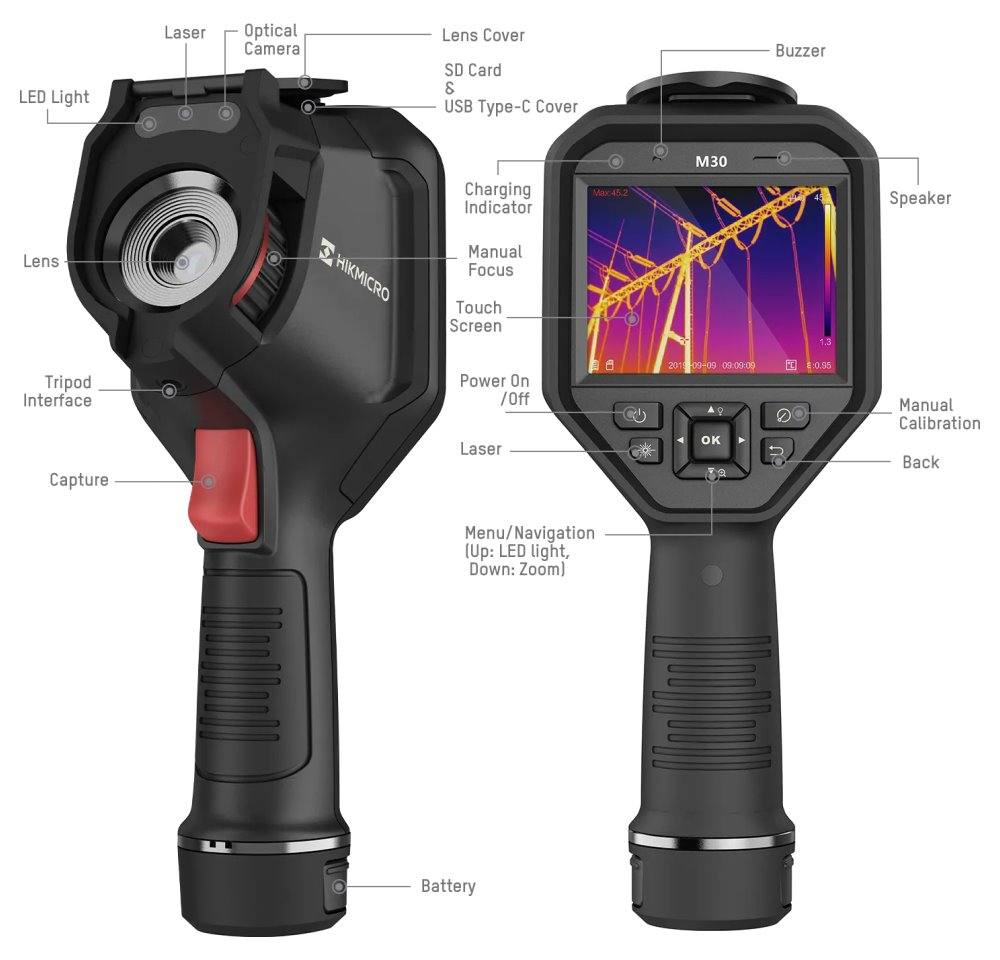 Univerzální průmyslová termokamera řady M vhodná pro všechna běžná měření v elektrotechnice, průmyslu i stavebnictví. Kamera je osazena infračerveným (25 Hz) i viditelným (8 Mpx) snímačem umožňujícím prolnutí obou spekter, manuálním ostřením pro ostré snímky nebo dotykovým displejem pro snadné ovládání. Doplňkové funkce umožňují přesné popsání snímku a vedle statických snímků lze pořizovat i videa. Výměnný akumulátor Li-ion umožňuje až 4 h provozu.