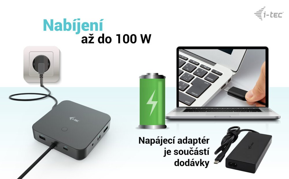 Součástí balení je USB-C napájecí adaptér s výkonem max. 100 W (20 V/ 5 A).