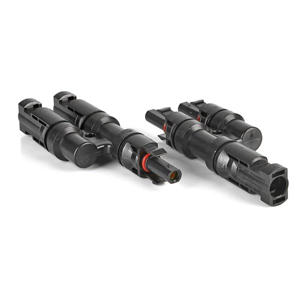 Rozbočovací solární T konektor typu MC4 určený pro paralelní propojení solárních panelů. Je vyroben z vysoce odolného plastu a je opatřen gumovými těsnícími vložkami. Vhodný i pro venkovní aplikace.