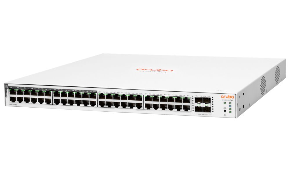 Spravovatelný PoE+ switch nabízející 24× 10/100/1000 Mbps RJ-45 portů s PoE+ (802.3af/at), 24× 10/100/1000 Mbps RJ-45 portů a 4× 1 GbE SFP sloty. Přepínací kapacita switche je 104 Gbps a rychlost směrování činí 77,37 Mpps. Mezi hlavní přednosti patří snadná tvorba oddělených VLAN, QoS nebo IGMP Snooping. Řada Aruba 1830 nabízí uživatelsky přívětivé webové rozhraní či mobilní aplikaci pro snadnou konfiguraci a správu.