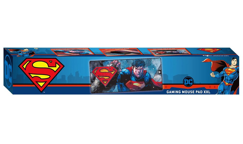 Velká podložka pod myš a klávesnici pro fanoušky DC Comics a Supermana. S přilnavým gumovým podkladem je podložka bezpečně přichycena ke stolu, kde zůstává za všech okolností.