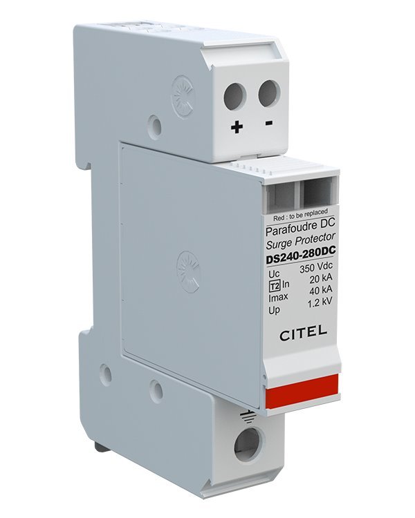 Svodič přepětí DS240S-280DC je určen k ochraně menších a středních ostrovních fotovoltaických elektráren s maximálním vstupem 350 V. Slouží jako hlavní ochrana systému proti přepěťovým špičkám způsobených např. úderem blesku. Instalace se provádí na vedení od solárních panelů před vstupem do regulátoru nebo měniče. Na tato zařízení se připojuje paralelně vůči zemnění.