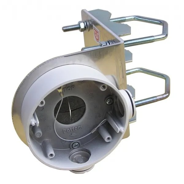 Kovový držák ve tvaru L určený pro montáž patic DS-1280ZJ-S a DS-1260ZJ. Držák je použitelný pro montáž na stožár o průměru 27-75 mm pomocí přiložených úchytů.