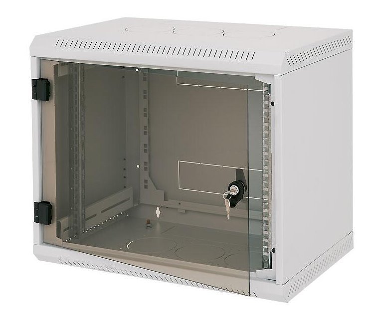Jednodílný nástěnný rozvaděč s krytím IP20, nosnost při správném zavěšení 100 kg. Dveře celoskleněné s bezpečnostním tvrzeným sklem 4 mm, robustní svařovaná konstrukce. Tento typ má šest vylamovacích záslepek pro montáž chladicích jednotek nebo ventilátorů. Součástí rozvaděče jsou dvě posuvné vertikální lišty.