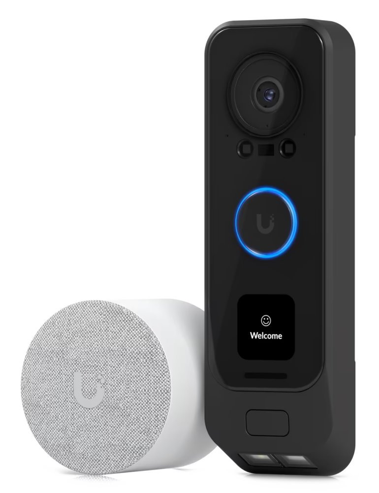 UniFi Protect G4 Doorbell Pro je PoE video zvonek vybavený primární 5Mpx kamerou a sekundární 8Mpx kamerou (např. pro prohlížení zásilek). Dále je pak vybaven vestavěným programovatelným LCM displejem, LED světlem, obousměrnou zvukovou komunikací a čtečkou otisku prstů a NFC karet.