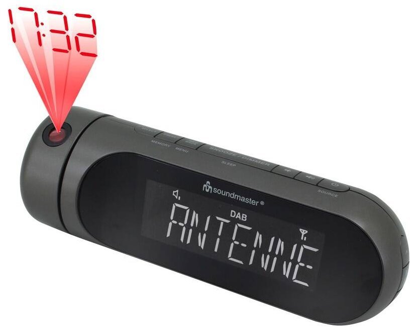 Kompaktní rádio, kombinující klasický budík a DAB+ nebo FM příjem s podporou RDS. V závislosti na vašich preferencích si tak můžete vybrat, zda chcete probudit alarmem nebo za zvuků vaší oblíbené rádiové stanice. Samozřejmostí je funkce opakovaného buzení a možnost nastavení dvou budíků pro různé časy. Po stisknutí tlačítka budík navíc promítne čas na strop a stiskem druhého tlačítka lze tuto projekci otáčet o 180°. K dispozici je také USB konektor pro nabíjení dalších zařízení. Napájení je řešeno skrze dodávaný síťový adaptér.