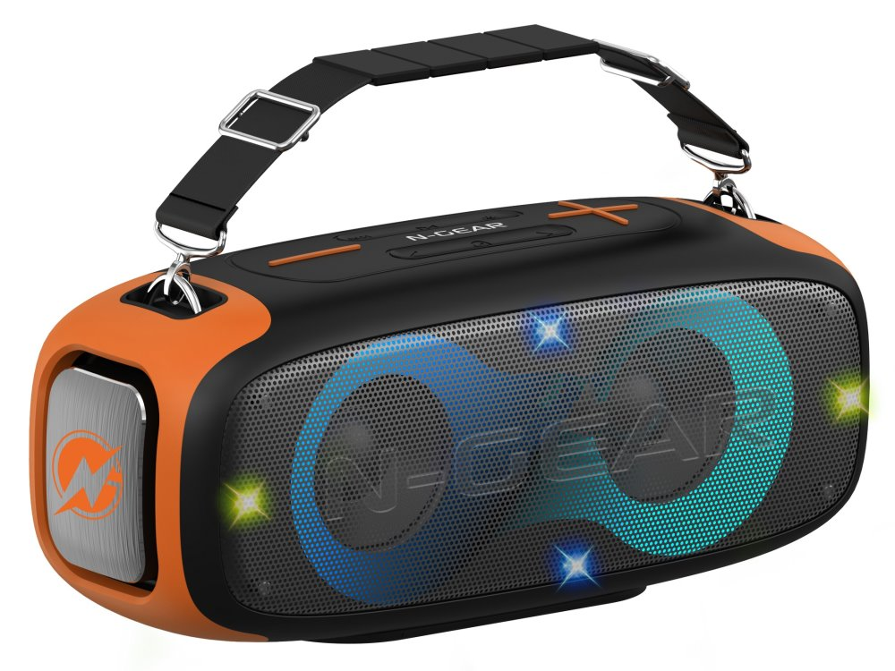 Bluetooth reproduktor N-GEAR Blazooka 830 v přenosném provedení pro komfortní a bezdrátový poslech. Odolná konstrukce s certifikací IPX5 chrání reproduktor proti dešti, případně slunci. Díky tomu je ideální pro venkovní použití na garden párty, oslavě narozenin, v parku, kempu apod. Bezdrátový zvuk si užijete jasně a silně díky celkovému výkonu 70 W.