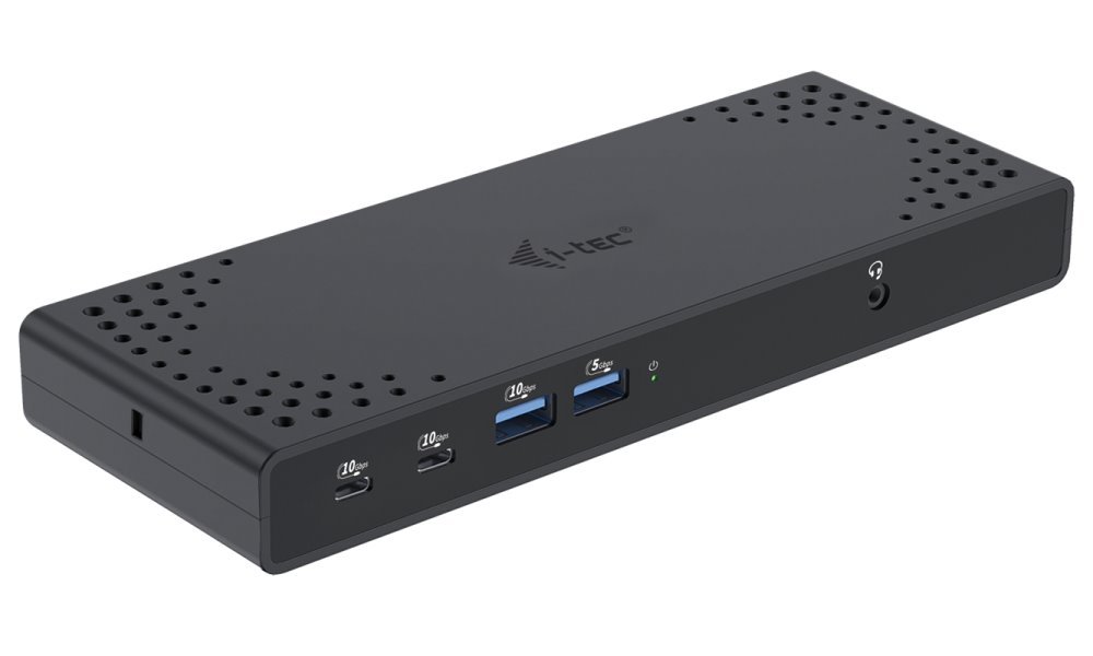 Dokovací stanice i-tec USB-C Triple Display, která je kompatibilní s moderními notebooky, tablety a další výpočetní technikou. Disponuje bohatou nabídkou konektorů, abyste se při využívání periferních zařízení nemuseli omezovat. Mezi přednosti patří například podporuje až 100W napájení připojeného notebooku nebo tabletu, podpora vysokého rozlišení 4K při obnovovací frekvenci až 60 Hz nebo kombinovaný 3,5mm audio/mikroport pro rychlé připojení sluchátek, respektive headsetu.