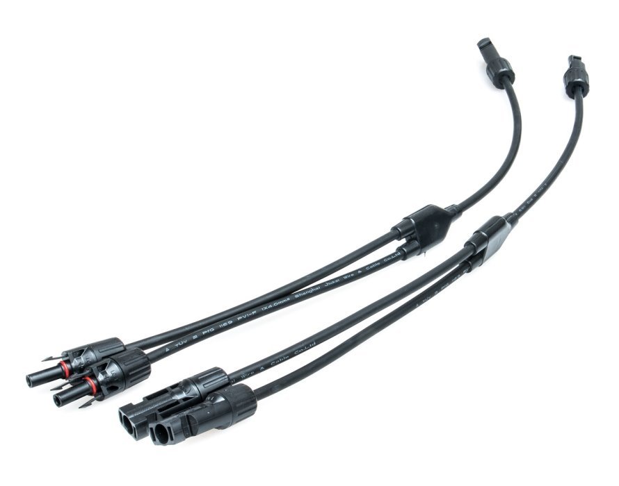 MC4 rozbočovací konektor je vyroben z 20 cm dlouhého (na každé straně) kabelu o průřezu 4 mm2 (AWG12) a odolného plastu, který zajišťuje pevnost a spolehlivost. Konektory jsou vybaveny pryžovými těsněními s krytím IP65, jsou tedy ideální pro venkovní použití. Určené pro kabeláž solárních aplikací.