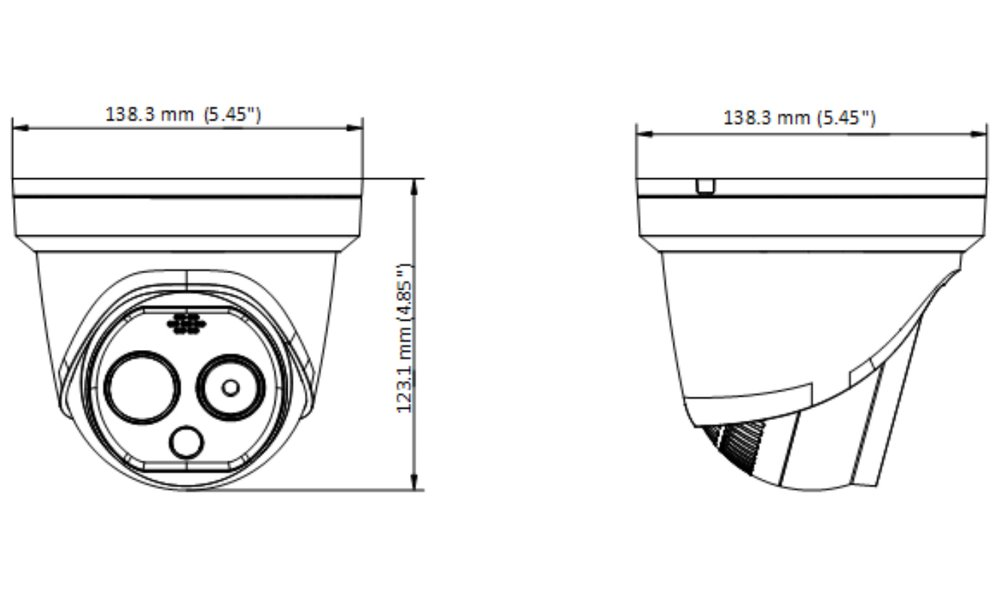 Bezpečnostní termální venkovní IP kamera s duálním snímáním v termo (256 × 192) a vizuální (2688 × 1520) oblasti. Rozlišovací schopnost pod 40 mK, objektiv f = 6,9 mm (24,9° × 18,7°), vizuální f = 6,4 mm (53° × 28°), podpora WDR (120 dB), IR a bílý LED přísvit.