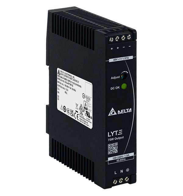 Nastavitelný napájecí zdroj pro instalaci na DIN lištu s výstupním napětím DC 48 V (max. 1,57 A) a výkonem 75 W. Nabízí účinnost až 90 %.