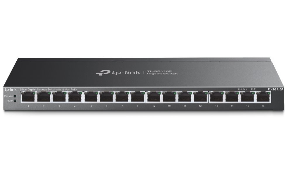 Switch nabízí 16× GbE RJ-45 portů s podporou PoE+ 802.3at/af a celkovým zatížením až 120 W. Přepínací kapacita dosahuje až 32 Gbps a rychlost směrování až 23,8 Mpps.