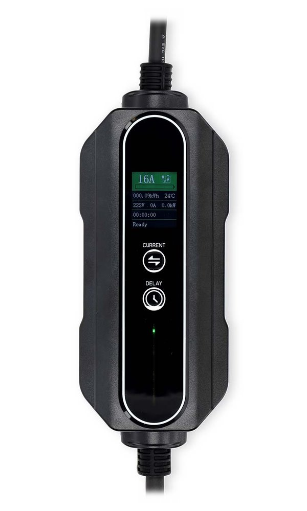 Cestovní přepínatelná nabíjecí stanice určená pro elektromobily. Tato jednotka je vybavena konektorem CEE 7/7, který umožňuje bezproblémové nabíjení vašeho elektromobilu kdekoli na cestách, a konektorem Schuko, který zajišťuje kompatibilitu se standardními elektrickými zásuvkami. Díky nastavitelnému nabíjecímu proudu v rozsahu od 6 A do 16 A se přizpůsobí potřebám vašeho vozidla. Barevný displej poskytuje údaje v reálném čase o napětí, výkonu, stavu nabíjení a vnitřní teplotě. Krytí dle IP55 zaručí spolu s gumovými krytkami a ABS pouzdrem odolnost proti povětrnostním vlivům, vodě, písku i prachu. Samozřejmostí pak je ochrana proti nadměrnému, podměrnému a teplotnímu tlaku.