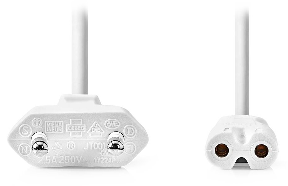 Tento 2,5A neuzemněný napájecí kabel s konektory IEC-320-C7 a Euro je vhodný k připojení zařízení napájených ze sítě do zásuvky ve zdi. Lze použít pro audio, video a počítačová (periferní) zařízení s 2pólovým připojením.