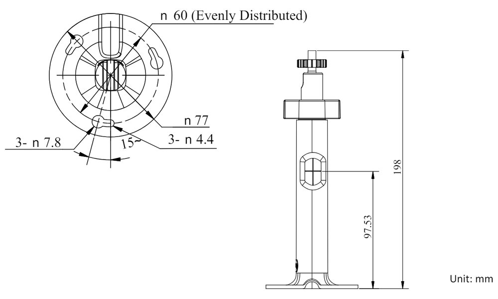 Držák pro montáž kamer na strop, zatížitelnost 2 kg. Zeď musí unést více než 3krát větší hmotnost, než je celková hmotnost kamery a držáku.