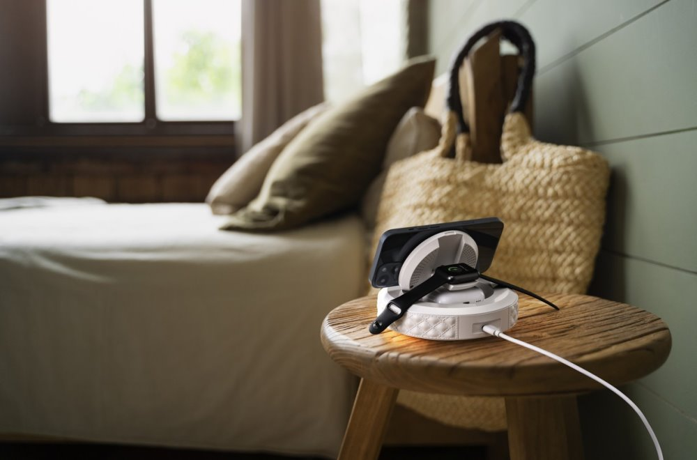Multifunkční budík s velkým displejem pro zobrazení aktuálního času, třemi úrovněmi jasu i možností displej zcela vypnout pro ničím nerušený spánek. Samozřejmostí je možnost nastavení dvou časů budíku i funkce odložení. Předností je navíc integrovaná bezdrátová Qi nabíječka pro dobíjení kompatibilních mobilních zařízení jako jsou telefony, hodinky a sluchátka výkonem až 10 W. Napájení je realizováno skrze USB-C port. Pro zálohování času v případě výpadku elektrické sítě je v zařízení vyměnitelná baterie CR2032.