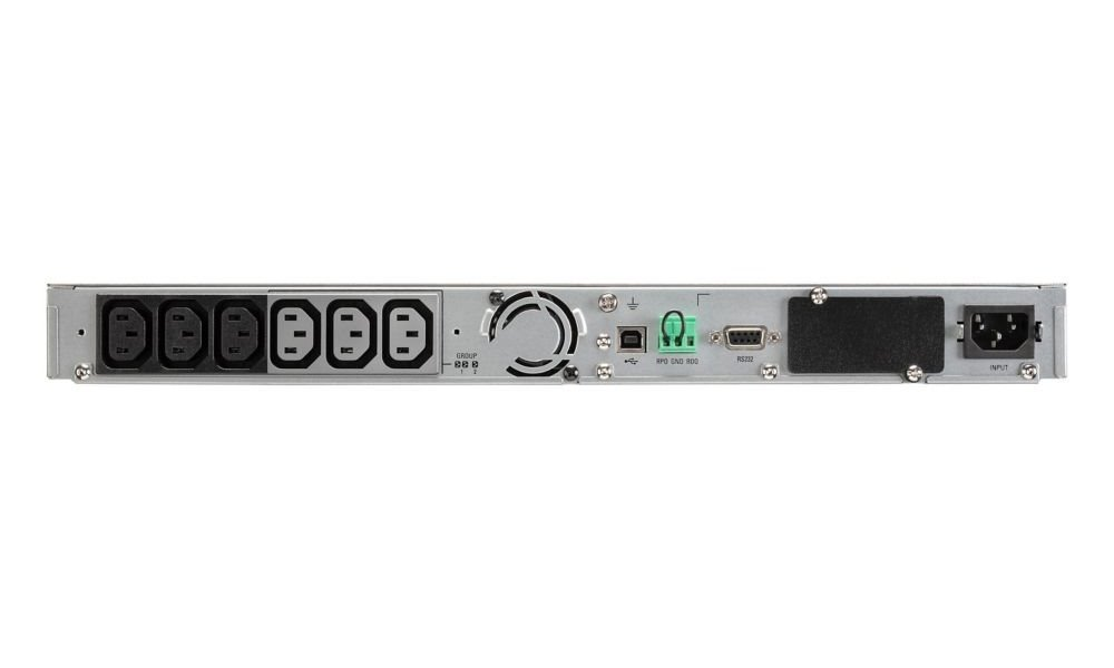 Komunikační porty: 1× USB-B, 1× RS-232, 1× minisvorkovnice pro dálkové zapnutí/vypnutí a pro dálkové odstavení, 1× RJ-45, 1× USB