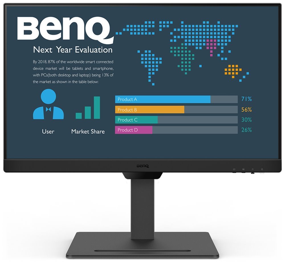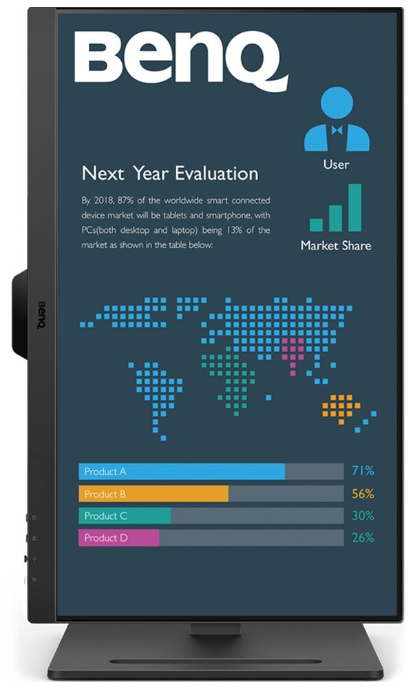 S monitorem BenQ BL2490T dokážete čelit každé pracovní výzvě. Vyznačuje se potřebnou ergonomií pro nastavení do výšky či úhlu otočení až o 90°. Díky tomu se přizpůsobí všem vašim potřebám ohledně pohodlí a umožní vám efektivně pracovat po celý den. Displej dosahuje úhlopříčky 23,8" a ostrého Full HD rozlišení. PC aplikace, internetové stránky, dokumenty a multimediální obsah tak zobrazí jasně a ostře.