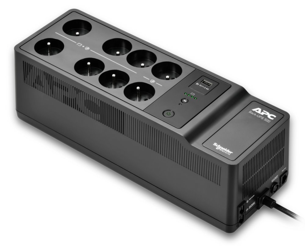 Záložní zdroj pro montáž na podlahu/stěnu umožňuje připojení až osmi zařízení pomocí zásuvek francouzského typu a všechny je chránit proti přepětí, šest z nich je navíc bateriově zálohovaných. Přepěťová ochrana je též dostupná pro internetovou síť. UPS je vybavena LED signalizací, informující o jejím stavu. K dispozici je také port USB, s jehož pomocí lze nabíjet mobilní zařízení včetně chytrých telefonů a tabletů. Díky svým malým rozměrům je záložní zdroj vhodný do domácnosti i kanceláře.