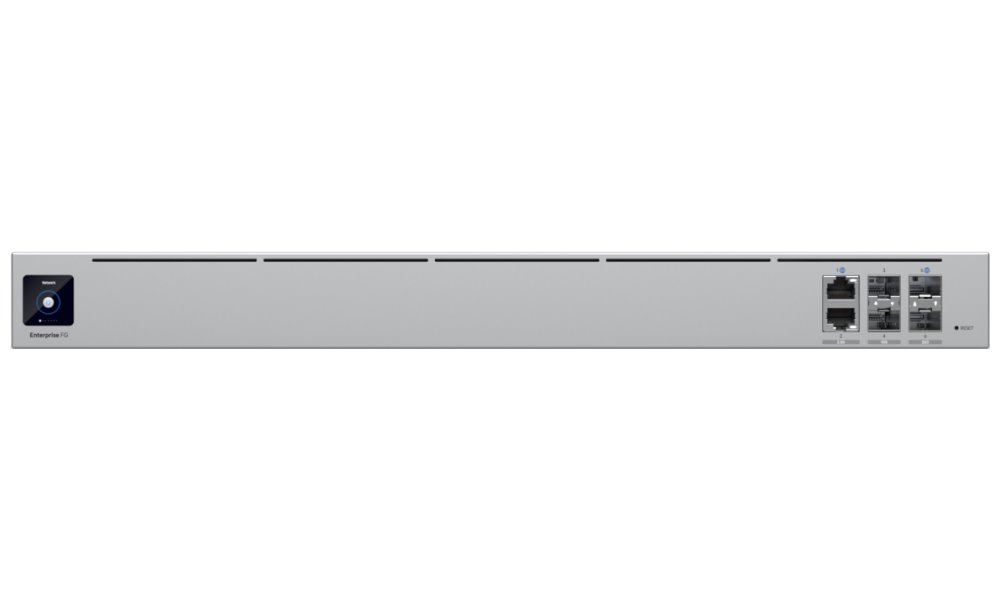 UniFi Enterprise Fortress Gateway je vybavena dvěma 25G SFP28, dvěma 10G SFP+ a dvěma 2,5 GbE RJ-45 porty, které zajišťují vysokorychlostní připojení potřebné pro podporu většiny aplikací náročných na šířku pásma. Brána podporuje více než 500 zařízení UniFi a více než 5000 klientů. Vyniká také jako kompaktní řešení zabezpečení sítě, které nabízí kompletní sadu funkcí pro minimalizaci hrozeb, včetně systémů detekce a prevence narušení (IDS/IPS), filtrování obsahu a segmentace provozu na základě VLAN. Disponuje 1,3" dotykovým displejem, který zobrazuje aktuální stav připojených zařízení.