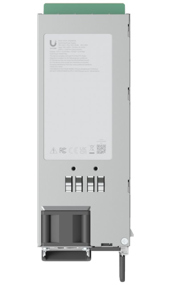 Napájecí zdroj o výkonu 150 W pro Cloud bránu Ubiquiti UniFi Enterprise Fortress Gateway nebo Gateway Enterprise. Disponuje ochranou proti nadproudu (18,5–22,5 A) a přepětí (13,5 V). Zdroj je připojitelný za provozu (hot-swap).