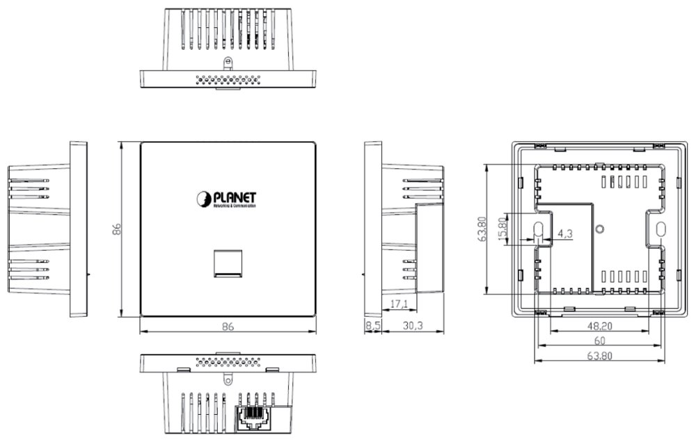 Dvoupásmový Wi-Fi 6 access point s podporou centrálního managementu přes NMS kontrolér pro vysokorychlostní podnikové řešení. Instalace do zdi prostřednictvím standardní evropské zásuvkové krabice o rozměrech 86 × 86 mm. Pracuje na frekvenci 2,4 GHz a 5 GHz standardu 802.11a/b/g/n/ac/ax a díky tomu nabízí rychlost až 3000 Mbps. Čtyři integrované antény se ziskem 1,7 dBi postačí pro kompletní pokrytí kancelářských i jiných prostor. Podporuje také technologie OFDMA, MU-MIMO, Beamforming a BSS Coloring. Velkou předností je možnost vytvoření Mesh sítě spojením více přístupových bodů v jedné větvi. Pokročilé zabezpečení díky šifrovanému přenosu dat dle protokolů WPA/WPA2/WPA3 účinně zabrání odposlechu neoprávněnými uživateli. Napájení jednotky je řešeno skrze PoE+ 802.3at, příkon do 12 W.