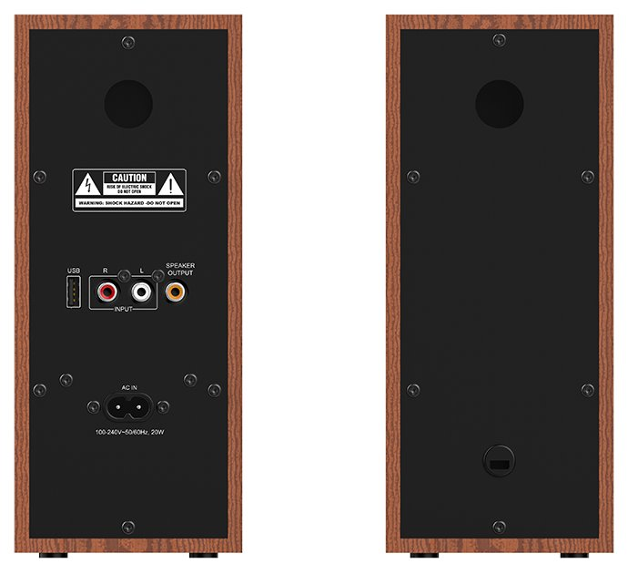 Sada reproduktorů s v konfiguraci 2.0 s celkovým výkonem 20 W. Vyrobeny jsou ze dřeva pro docílení toho nejlepšího zvuku s plnými basy i zřetelnými výškami. Připojení k počítači, notebooku či chytrému telefonu lze jednoduše realizovat drátově skrze audio vstup, nebo bezdrátově pomocí Bluetooth. K dispozici je také sluchátkový výstup a USB vstup. Ovládání hlasitosti a tónů je umístěno přímo na reproduktoru.
