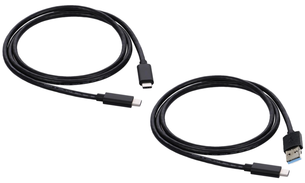 Součástí balení je USB-C na USB-C (100 cm), USB-C na USB (100 cm) kabel a napájecí adaptér.