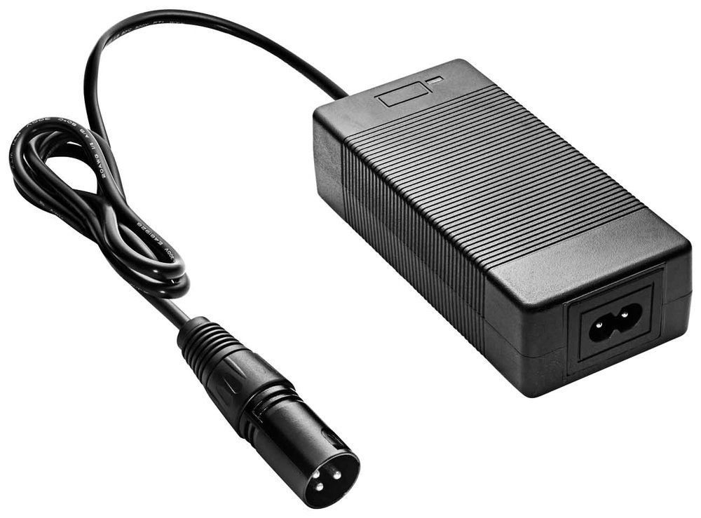 Napájecí adaptér o výkonu 60 W pro elektrokola a elektrokoloběžky s 24V bateriemi. Zařízení je vybaveno zásuvkou IEC C8 a výstupní zástrčkou ve standardu Cannon XLR, jejíž hlavní předností jsou nízké ztráty a vysoká odolnost proti mechanickému poškození. Přívodní síťový napájecí kabel není součástí balení.