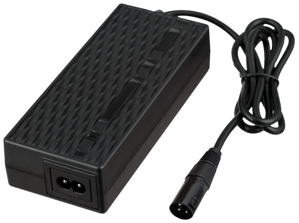 Napájecí adaptér o výkonu 84 W pro elektrokola a elektrokoloběžky s 36V bateriemi. Zařízení je vybaveno oblíbenou vstupní zásuvkou IEC C8. Výstupní kabel nabíječky (dlouhý 1 m) je zakončen zástrčkou Cannon XLR, která se vyznačuje vysokou odolností proti mechanickému poškození. Přívodní síťový napájecí kabel není součástí balení.