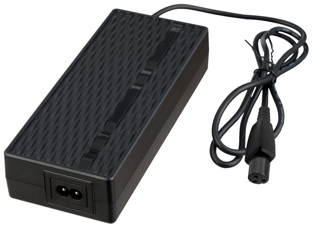 Napájecí adaptér o výkonu 84 W pro elektrokola a elektrokoloběžky s 36V Li-Ion bateriemi. Má 3pólový 9mm konektor, který je vhodný mimo jiné pro výrobky značek Goclever, Skymaster, Smart Balance, Kawasaki, Manta nebo Razor. Přívodní síťový napájecí kabel není součástí balení.