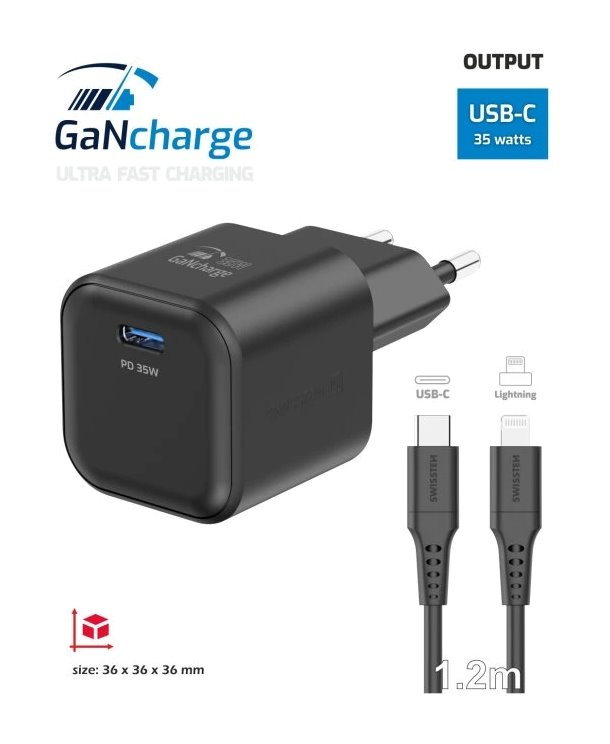 Univerzální napájecí adaptér s výkonem až 35 W. Pro nabíjení zařízení je k dispozici konektor USB-C. Adaptér podporuje protokol rychlého nabíjení Power Delivery. Použitá GaN technologie snižuje tvorbu tepla, čímž zvyšuje účinnost nabíječky při zachování kompaktních rozměrů (přibližně 3,6 × 3,6 × 3,6 cm). Samozřejmostí je ochrana proti zkratování, přepětí, přetížení nabíjení a vysoké teplotě.