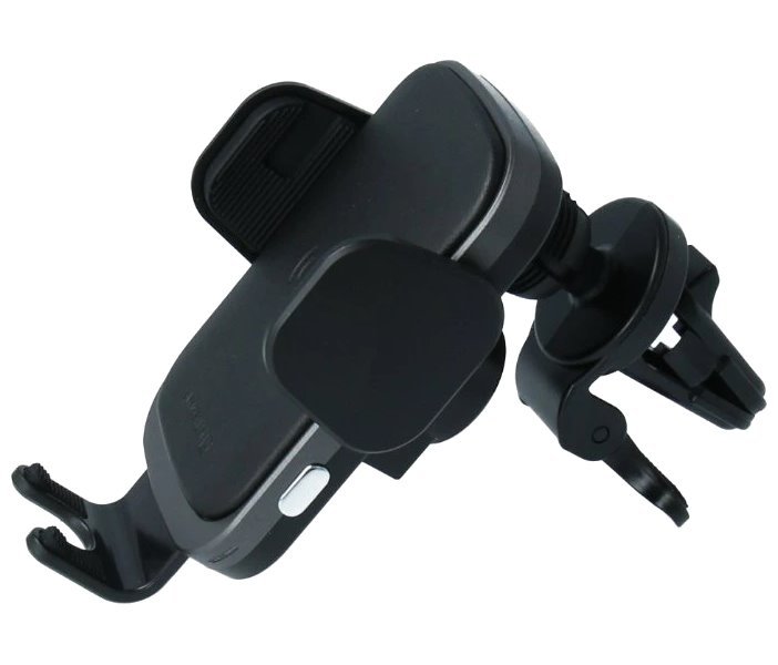 Držák do auta s bezdrátovým nabíjením o výkonu až 15 W. Díky gravitačnímu mechanismu a pevným bočním čelistím je telefon bezpečně uchycen. Velmi silné čelisti do ventilace zajistí, že držák zůstane pevně na svém místě. Zároveň díky otočnému kloubu pohodlně nastavíte a zafixujete úhel telefonu. Zajisté potěší vestavěný kondenzátor s kapacitou 1000 mF umožňující překlenutí krátkodobého výpadku napájení.