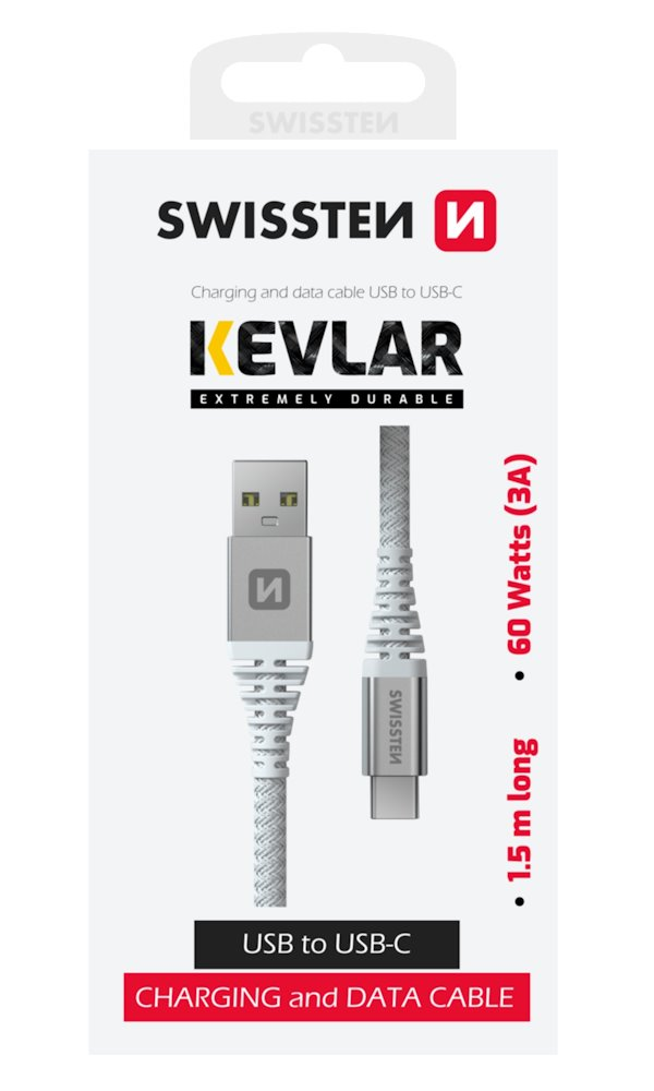 Extrémně odolný nabíjecí a datový USB na USB-C kabel vyztužený kevlarovým vláknem podporuje kromě přenosu dat rychlostí 480 Mb/s také nabíjení proudem až 3 A (až 60 W). Flexibilní provedení odolné proti zamotání zajistí dlouhou životnost a předejde lámání kabelu.