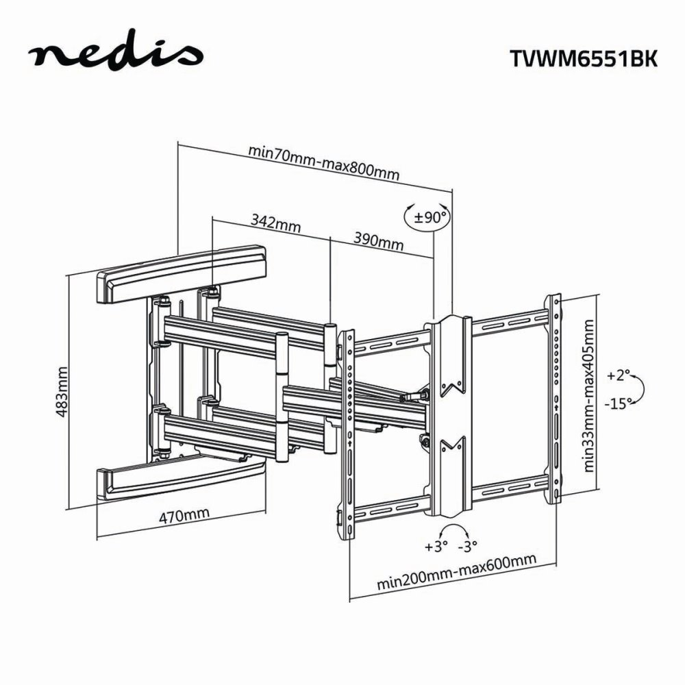 Sklopný a otočný nástěnný držák pro ploché obrazovky s úhlopříčkou od 37" do 80" a hmotností až 70 kg. Možnost náklonu o +2° až -15° a otáčení až 180° umožňuje nastavit požadovaný úhel pohledu pro maximální flexibilitu při sledování obrazovky. Vestavěný systém správy kabeláže minimalizuje nepořádek. Držák má snadno nastavitelnou vzdálenost od zdi v rozsahu 7 až 80 cm a je vhodný pro obrazovky, které odpovídají standardům VESA 200 × 100 až 600 × 400 mm.