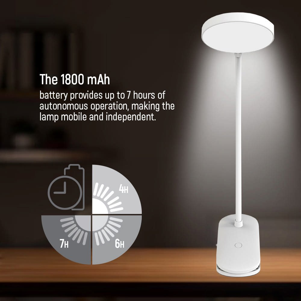 Baterie umožňuje až 7 hodin provozu, pro nabíjení slouží rozhraní USB, takže napájet můžete z PC, notebooku nebo powerbanky. LED lampička ColorWay CW-DL10FCB-W nabízí různé režimy jasu a teploty barev. Pomocí dotykového tlačítka tak získáte osvětlení, které potřebujete. Osvětlení zajišťuje 24 LED diod, které produkují rovnoměrný svit bez oslnění a snižují námahu očí.