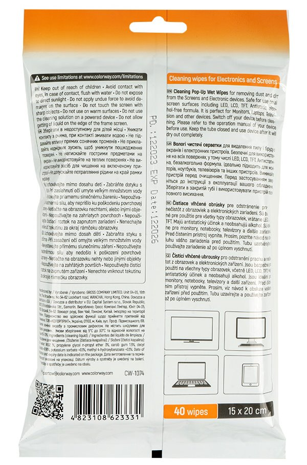 Vlhčené čisticí ubrousky určené k odstraňování prachu, nečistot, skvrn a šmouh z obrazovek, monitorů, notebooků, televizorů, chytrých telefonů, počítačů, periferních zařízení a další elektroniky. Jsou ideální pro všechny povrchy, včetně LED, LCD a TFT obrazovek, a mají antistatické složení bez alkoholu. Ubrousky jsou vyrobeny z vysoce kvalitního materiálu, který umožňuje snadné odtrhávání bez zanechání šmouh po čištění.