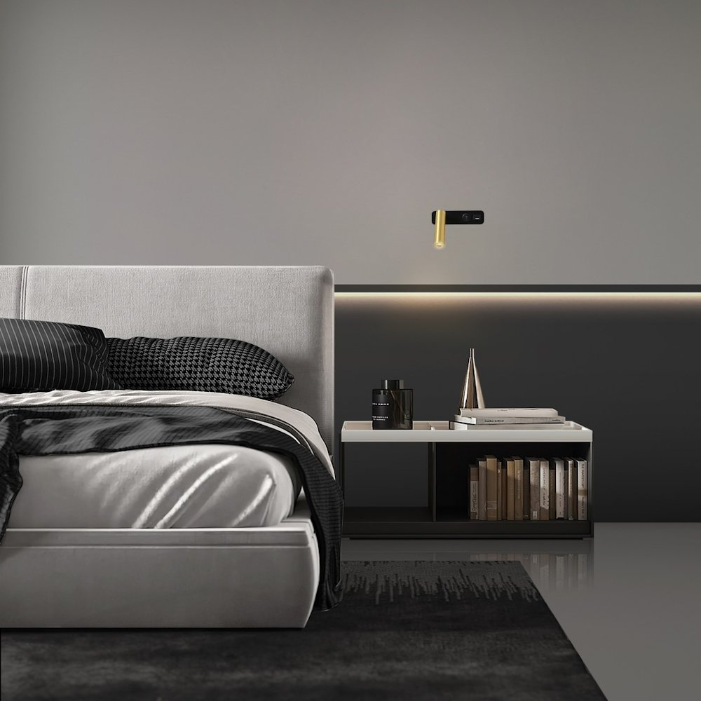 Nástěnné bodové LED svítidlo s výkonem 3 W. Disponuje válcovitou hlavou, kterou lze otáčet v rozsahu 330° a vyklápět o 90°, což umožňuje přesné zacílení tam, kde je potřeba. Mechanický kulatý vypínač umístěný na těle svítidla umožňuje jednoduché a pohodlné ovládání. Předností je také integrovaný USB port pro snadné nabíjení elektronických zařízení, což z něj činí ideální doplněk k posteli nebo pracovnímu stolu.
