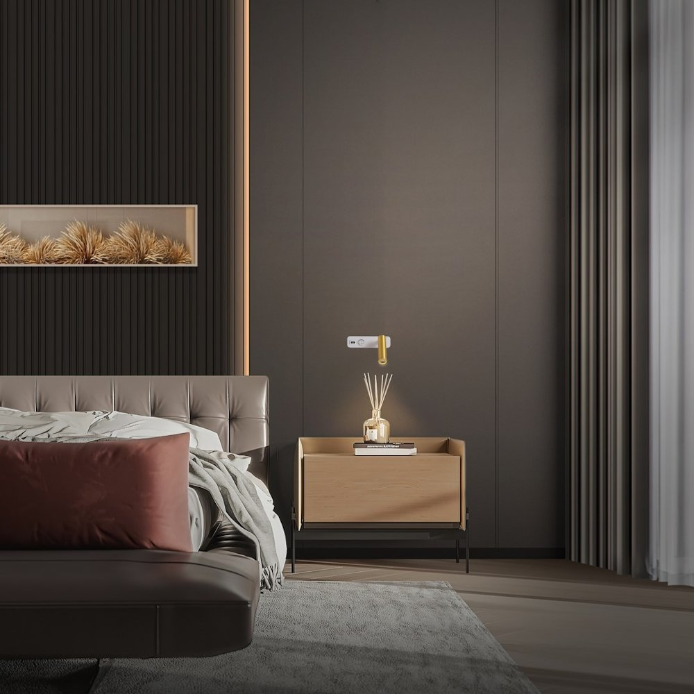 Nástěnné bodové LED svítidlo s výkonem 3 W. Disponuje válcovitou hlavou, kterou lze otáčet v rozsahu 330° a vyklápět o 90°, což umožňuje přesné zacílení tam, kde je potřeba. Mechanický kulatý vypínač umístěný na těle svítidla umožňuje jednoduché a pohodlné ovládání. Předností je také integrovaný USB port pro snadné nabíjení elektronických zařízení, což z něj činí ideální doplněk k posteli nebo pracovnímu stolu.