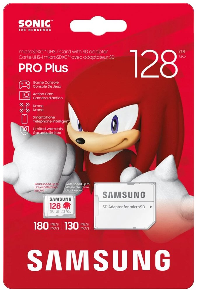 Paměťová karta Samsung PRO Plus Sonic the Hedgehog, která je rychlá stejně jako modrý kulový blesk. Jedná se oficiálně licencovaný produkt, který potěší všechny fanoušky kultovního ježka Sonica. Disponuje kapacitou 128 GB a nabízí tak obří prostor pro všechna vaše multimédia. Umožní vám bez kompromisů uložit hry, filmy, videa i fotografie a vaše multimediální knihovna může dlouhodobě růst.