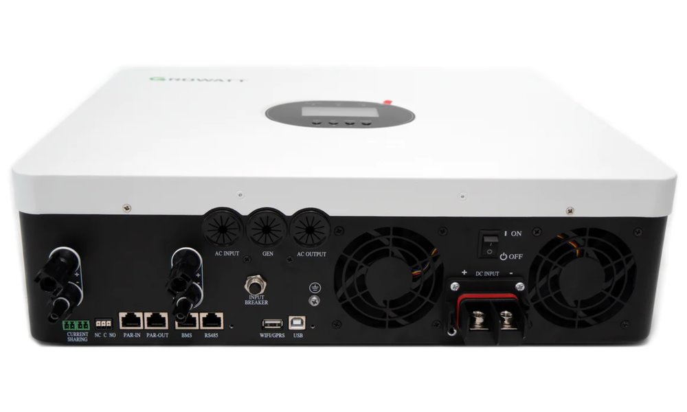 Měnič Growatt SPF 6000 ES Plus je optimální volbou pro tzv. ostrovní systémy bez dostupné distribuční sítě – k jednotce může být připojena elektrocentrála a/nebo baterie jako záložní zdroj energie. Jedná se o hybridní měnič se sinusovým výstupem ideální pro domácí a malé komerční systémy. Vestavěný MPPT regulátor zvládne až 8 kW FV pole s maximálním napětím na prázdno 500 Voc. Umí pracovat jak s olověnými, tak i Li-ion akumulátory. Samozřejmostí jsou porty RJ-45 pro CAN/RS-485 komunikaci s BMS modulovými akumulátory LiFePO4 značek např. Pylontech, WECO, Seplos atd.