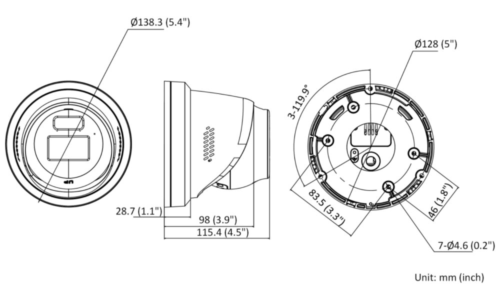 Objektiv: f = 2,8 mm, pevný, úhel záběru horizontálně 108,8°, vertikálně 56,4°, diagonálně 134,3°