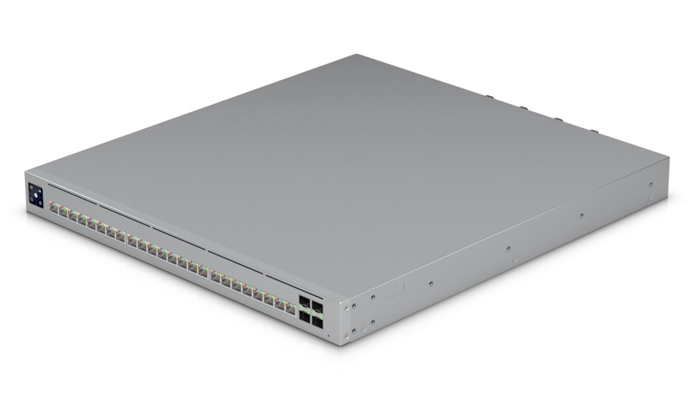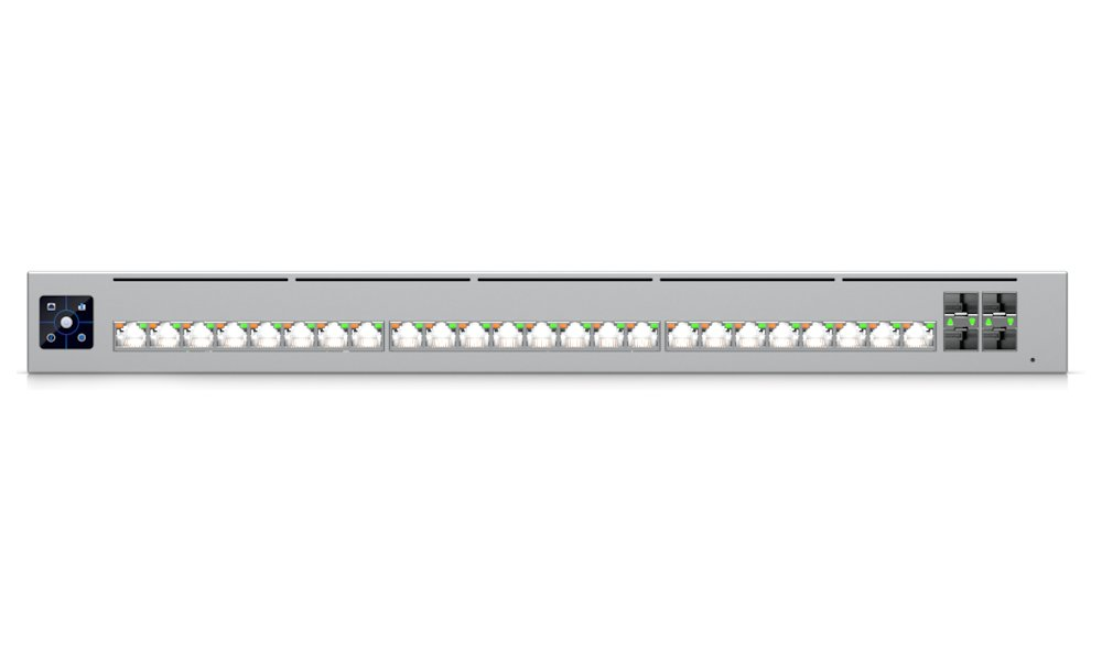 Porty: 16× 10G RJ-45 PoE+++, 8× 2,5G RJ-45 PoE+++, 2× 100G QSFP28, 4× 25G SFP28, 1× konzolový port RJ-45, 1× RJ-45 management