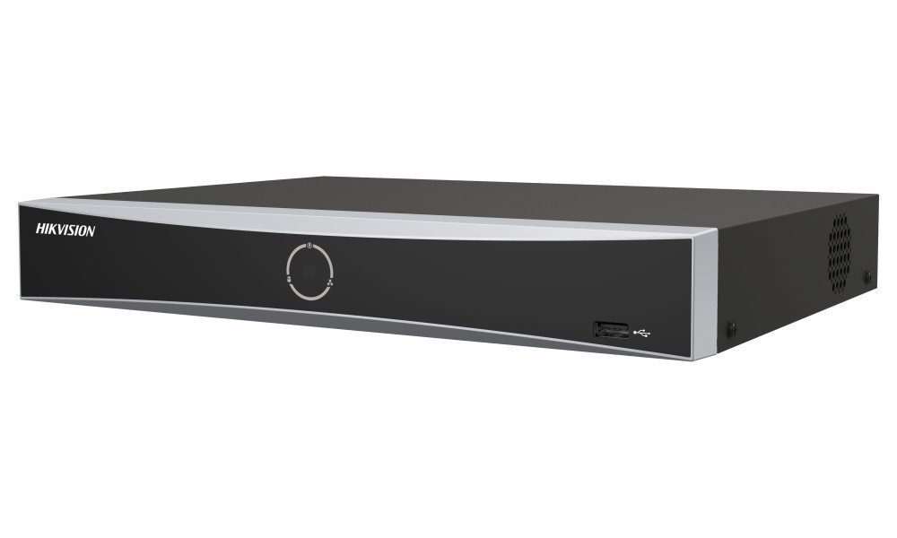 Záznamové zařízení pro 8 IP kamer s podporou PoE napájení (max. 80 W, IEEE 802.3af/at). Povoleny kombinace různých rozlišení do 12 Mpx a datový tok do 160 Mb/s (vstupní šířka pásma max. 80 Mb/s). Předností je 2kanálová analýza osob a vozidel s redukcí falešných alarmů + funkce rozpoznání obličeje na 1 kanále ve video-streamu nebo 4kanálové rozpoznávání obličeje pro snímky obličeje. Zařízení podporuje také dekódování H.265+, díky kterému můžete ušetřit až 75 % datového objemu. K dispozici jsou 2 pozice pro SATA pevný disk, každý s kapacitou až 16 TB. Aplikace Hik-Connect umožňuje snadnou správu sítě.