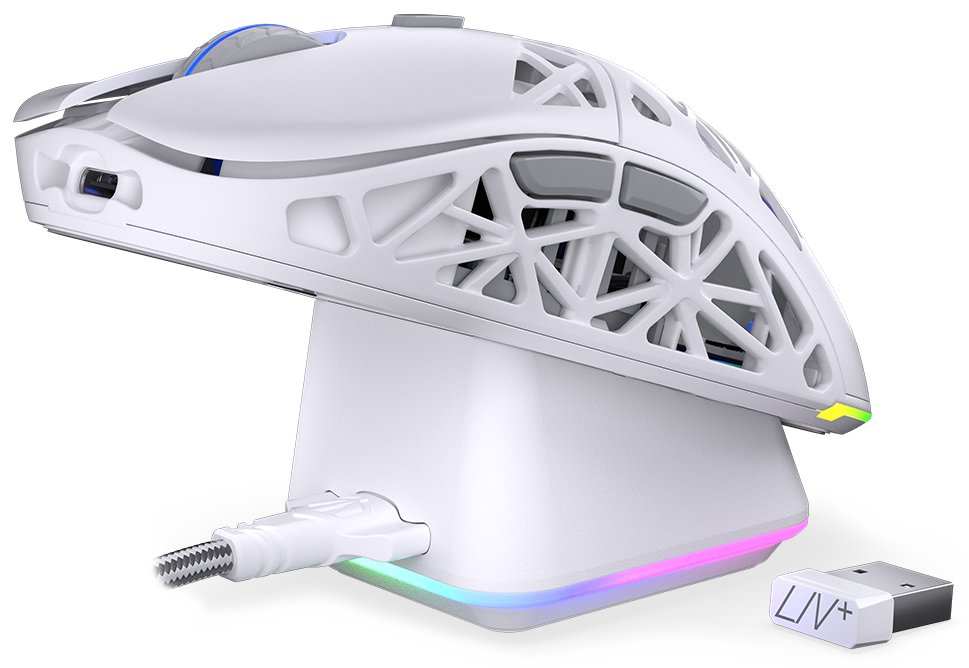 Ultra lehká bezdrátová herní myš disponující 6 programovatelnými tlačítky a vysoce přesným optickým senzorem Pixart PAW3395 s nastavitelným rozlišením až 26 000 DPI. Herní design doplňuje adresovatelné RGB podsvícení. Kvalitní spínače Kailh GM 8.0 vydrží více než 80 milionů kliků. Napájení zajišťuje vestavěná dobíjecí baterie s kapacitou 500 mAh. Myš lze jednoduše nabíjet pomocí dokovací stanice. Připojení lze jednoduše realizovat skrze USB kabel, technologii 2,4 GHz a miniaturní USB přijímač nebo pomocí Bluetooth.