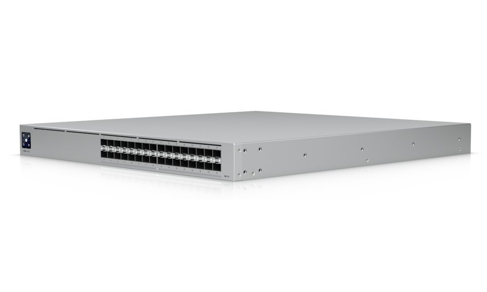 Profesionální 32portový L3 switch Etherlighting™ disponující 32× 25G SFP28 porty pro vysokokapacitní připojení. Ubiquiti UniFi Switch Pro XG Aggregation je vysoce výkonný, multigigabitový switch známého výrobce Ubiquiti ze série UniFi, který navíc disponuje 1,3" dotykovým LCM displejem pro usnadnění ovládání.