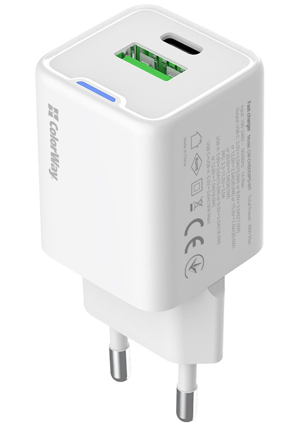 Moderní, kompaktní a výkonná nabíječka ColorWay CW-CHS053PDC-WT, která je vybavena celkem dvěma porty, a tak umožňuje souběžné napájení vašich zařízení. Adaptér je vybaven technologiemi pro rychlé nabíjení moderních zařízení různých značek.