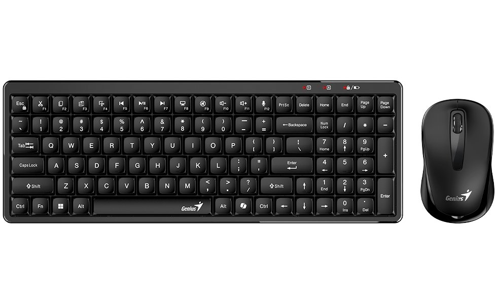 Genius LuxeMate Q8100 je prostorově úsporná bezdrátová kombinace klávesnice a myši navržená pro maximální produktivitu. Klávesnice disponuje speciálními klávesovými zkratkami pro nejčastěji používané funkce jako editace dokumentů, ovládání médií a přístup k Copilot AI. Díky retro designu kláves připomínajících psací stroj je psaní přesnější a pohodlnější.
