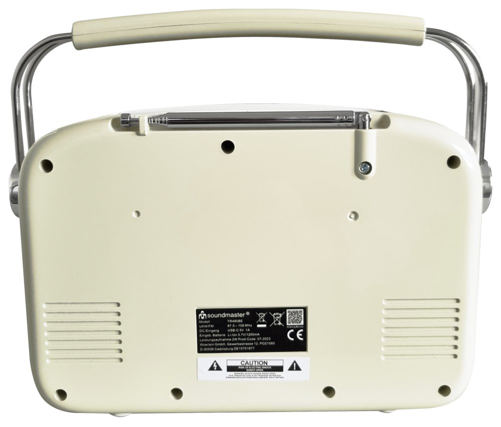 Soundmaster TR480BE kombinuje klasický retro design s moderními technologiemi. Díky vestavěnému Li-Ion akumulátoru s kapacitou 1200 mAh a integrovanému solárnímu panelu můžete poslouchat své oblíbené rozhlasové stanice kdekoliv, bez nutnosti stálého přístupu k elektrické síti.