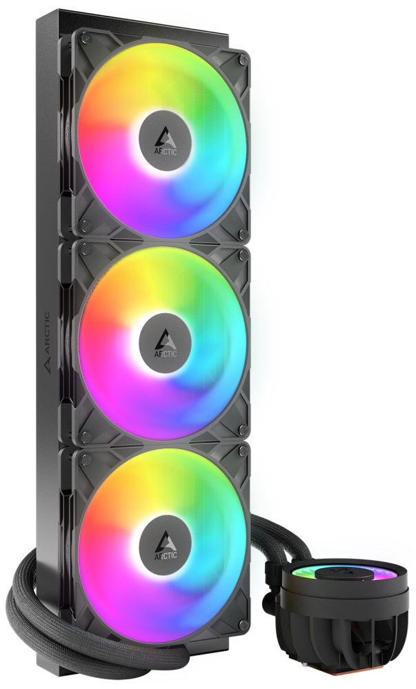 VRM ventilátor se aktivně postará o chlazení a podporuje stabilní výkon i v rámci přetaktování. Konstrukční technologie Intel Contact Frame rovnoměrně rozkládá tlak, a tak podporuje delší životnost procesoru. Trojice 140mm ventilátorů ARCTIC P14 Pro A-RGB pracuje tiše při nízkých otáčkách a v případě potřeby to roztočí do vysokých obrátek. Radiátor dokáže pojmout dostatek kapaliny na to, aby s přehledem zvládal vysokou teplotní zátěž. Připojen je prémiovými hadicemi, které jsou odolné a vydrží opravdu dlouho.